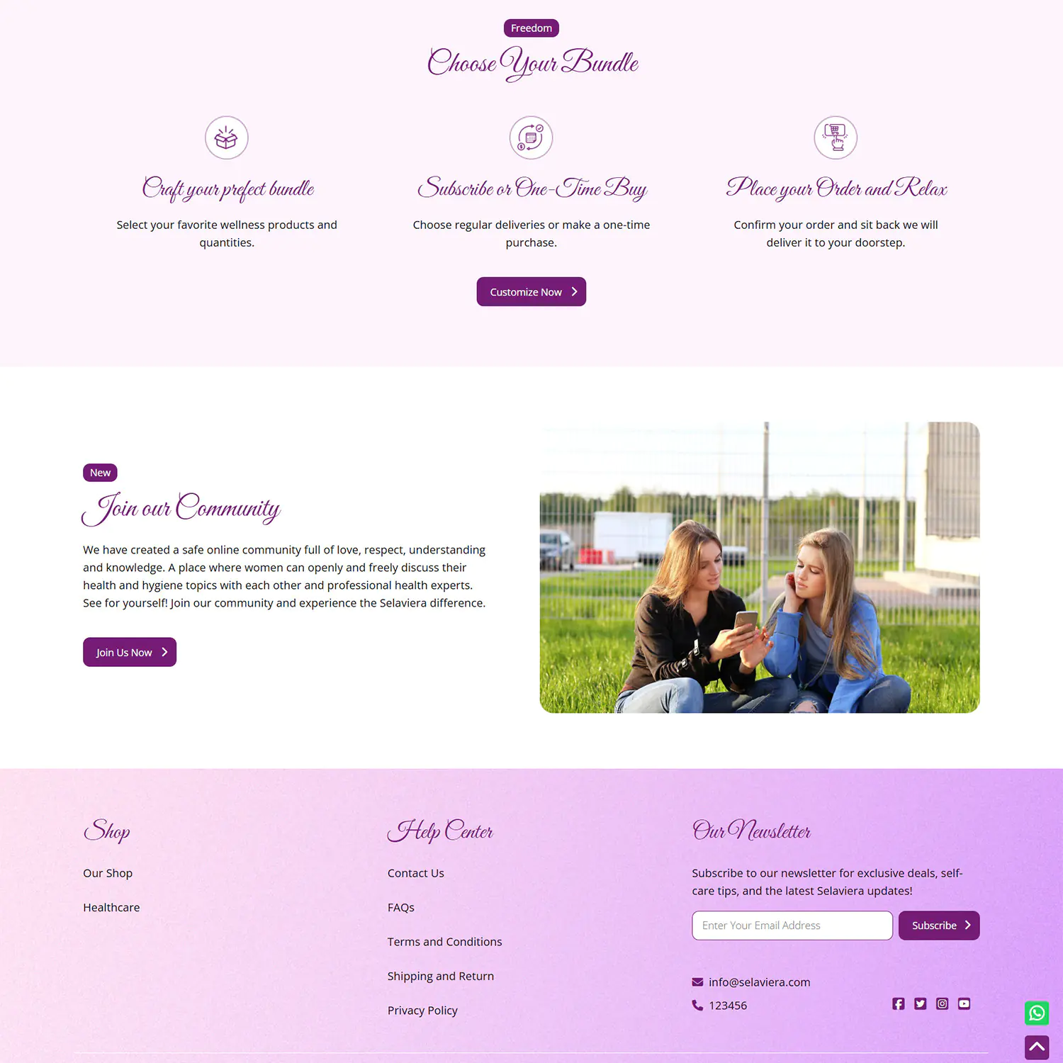 Selaviera is a women-focused brand combining self-care products, education, and community into a single digital platform. The brand aims to empower women through accessible hygiene and wellness solutions while fostering a safe, supportive environment for learning, discussion, and connection around women’s health and well-being.