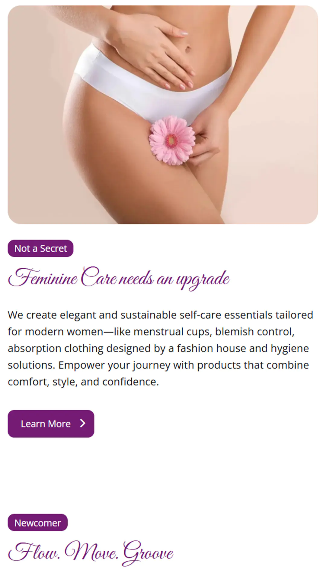 - Educational Wellness Content: Informative content supporting product usage and broader women’s health awareness.